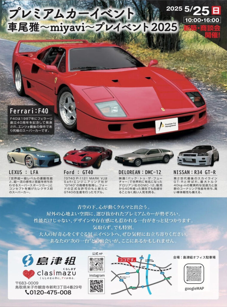 新モデルハウス 雅〜MIYAVI〜 のオープンに伴い、プレミアムカーイベントを開催いたします!